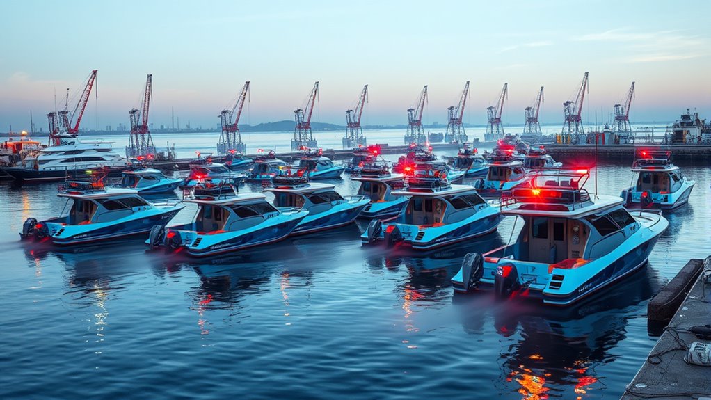 Imagine gliding smoothly over the water, feeling confident in your boat’s safety features. Advanced bait boat models include GPS tracking, anti-collision sensors, and automatic shut-off systems, ensuring peace of mind. These boats also have sturdy hulls, emergency beacons, and weather-resistant controls. I feel reassured knowing these safety features protect me and my catch, letting me focus on the thrill of the catch without worry.