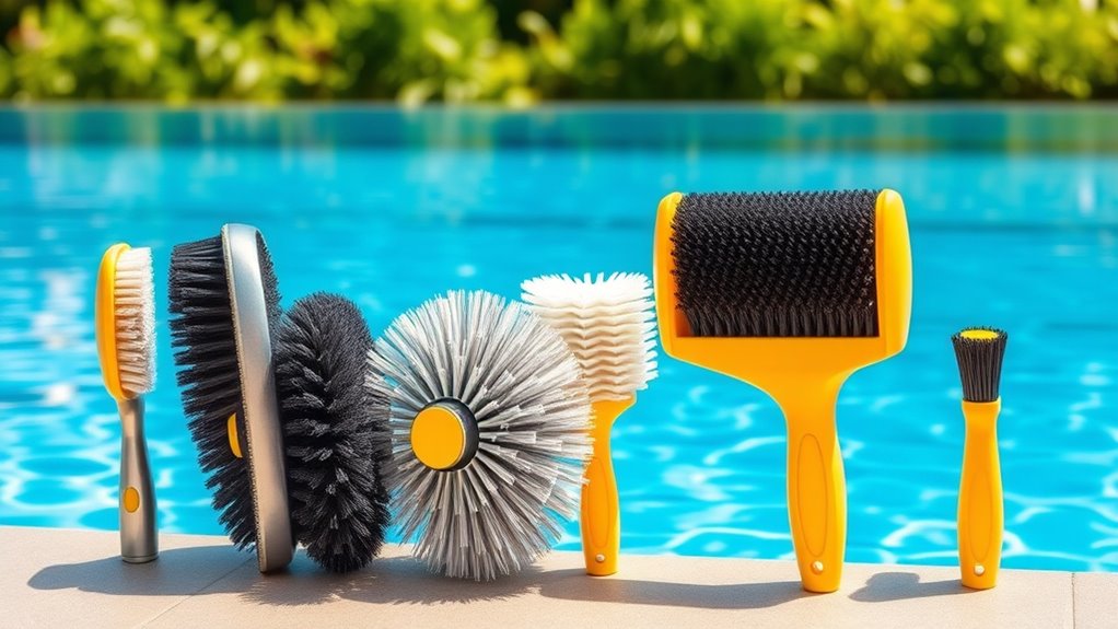 Choosing the right replacement brushes is like selecting the perfect brushstroke for a masterpiece—they define the clarity and brilliance of your pool’s shine. With so many options, I know it can feel overwhelming, but remember, the right brush transforms your cleaning routine from routine to remarkable. So, pick wisely, and let your pool’s sparkle be a demonstration to your attention to detail—because in the end, a spotless pool is the canvas of summer memories.