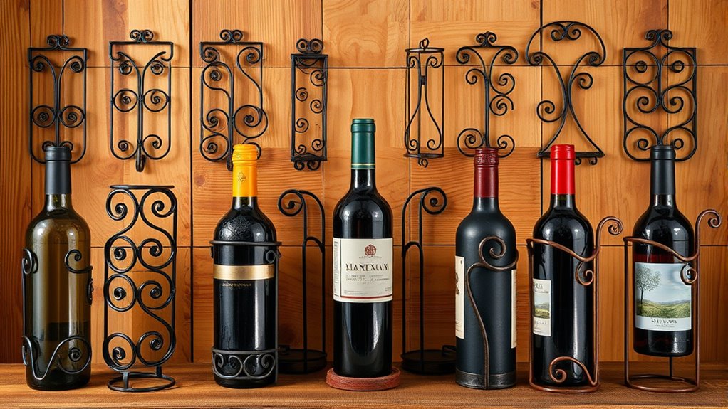 Choosing the perfect rustic iron wine bottle holder is like selecting a sturdy anchor for your cherished collection. It’s more than just storage; it’s a symbol of your appreciation for craftsmanship and warmth. Whether wall-mounted or countertop, each piece adds character and stability to your space. When you find that ideal holder, you’re not just holding wine—you’re safeguarding memories and inviting a touch of timeless charm into your home.