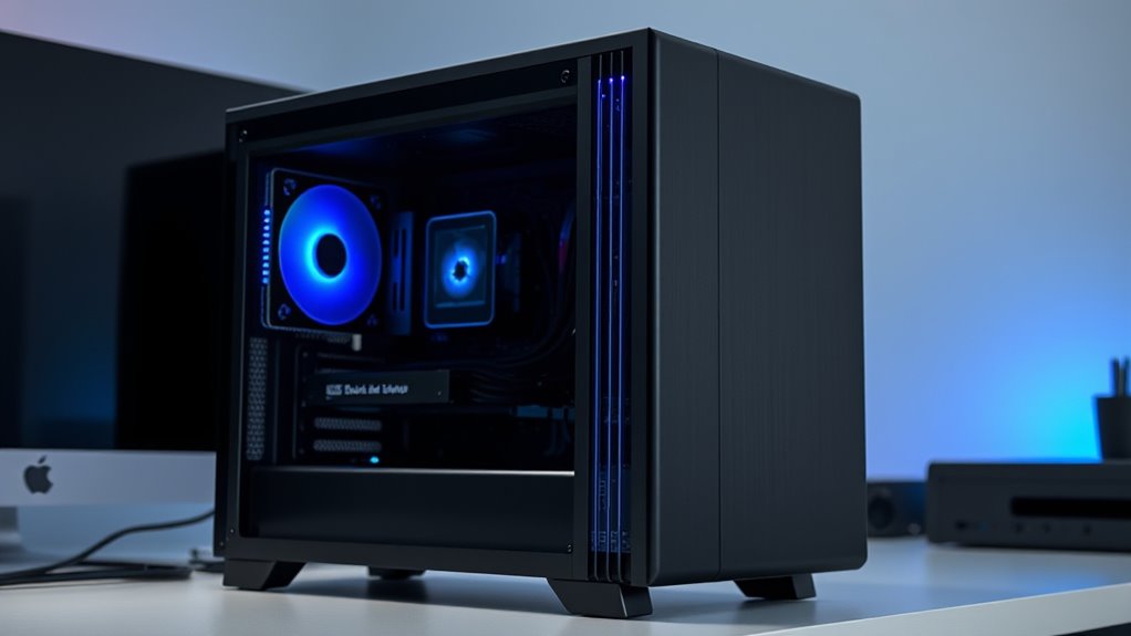 Silent cases generally don’t limit upgrade options or compatibility with high-performance hardware considerably. I’ve found they’re designed with ample space and good airflow, allowing me to install powerful GPUs, multiple drives, and advanced cooling solutions. However, I always double-check dimensions and clearance, since some soundproofing features can restrict larger components. Overall, I can build a high-performance, quiet PC without sacrificing expandability or compatibility.