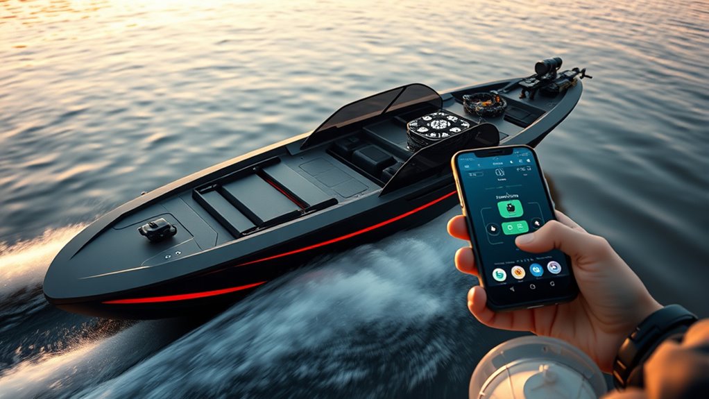 Choosing a smart bait boat with an intuitive app control can make a big difference in your fishing experience. A user-friendly interface with clear icons and simple menus means I can quickly learn and operate the boat without frustration. Responsive touchscreens and smooth navigation help me make precise adjustments on the fly, saving time and effort. Compatibility with both iOS and Android ensures I can use the app on my preferred device without hassle. Well-designed controls allow me to customize settings like speed, bait deployment, and waypoint management easily, giving me more control over my fishing strategy. Additionally, real-time feedback, such as battery life and GPS signals, boosts my confidence, enabling me to operate the bait boat efficiently and focus on catching fish rather than troubleshooting.