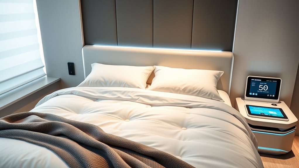 Have you ever wondered how smart beds can help improve your sleep quality? Sleep tracking capabilities are a game-changer, monitoring essential parameters like heart rate, respiration, movement, and sleep cycles to give you a complete picture of your rest. These systems use embedded sensors or connect with wearable devices to collect real-time data throughout the night. Advanced tracking can identify patterns and disruptions, helping you spot issues like apnea or insomnia and make necessary adjustments. The data is accessible through dedicated apps or smart home systems, providing insights, trends, and personalized tips for better sleep hygiene. By understanding your sleep habits, you can fine-tune your environment and routines, ultimately enhancing your overall sleep quality and waking up refreshed.