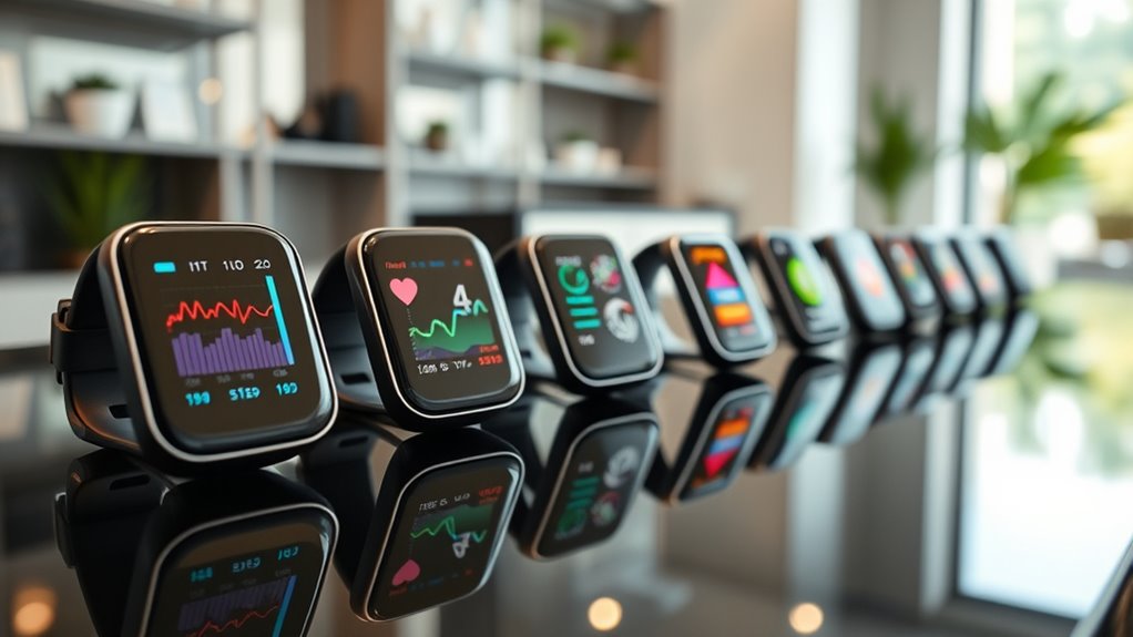 If you’re looking to stay on top of your health in 2025, I recommend checking out the top smart monitors like fitness trackers with heart rate and blood oxygen monitoring, blood pressure devices, and waterproof smartwatches with extensive sports modes. These devices combine sleek design, accurate tracking, and seamless connectivity to your favorite apps. Keep in mind factors like durability, battery life, and compatibility. If you keep exploring, you’ll find the perfect fit for your wellness journey.