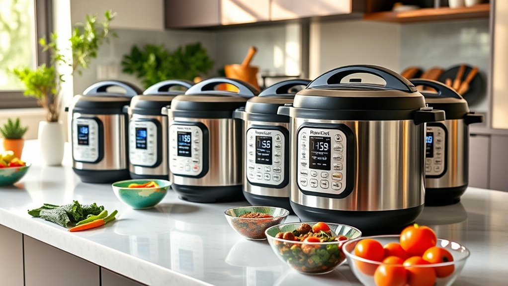 - Large capacities support family-sized meals, with advanced safety features ensuring secure operation during pressure cooking.