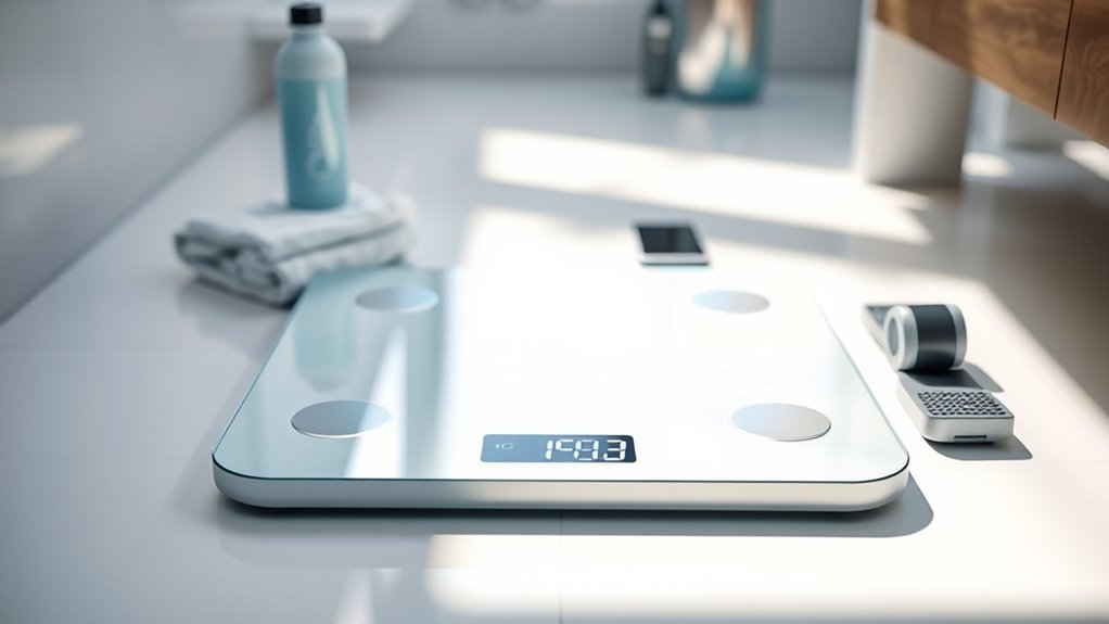 Think of these scales as bilingual translators for your fitness data. They generally sync well with popular fitness apps, making it easy to track progress seamlessly. I’ve found most compatible with apps like Fitbit, MyFitnessPal, and Apple Health. Just make certain your scale and app are both updated. This way, your measurements become a clear story of your journey, easily shared across platforms for a thorough view of your health.