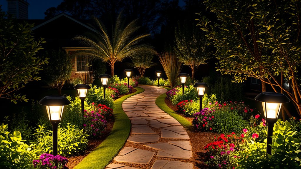 In the end, choosing the right solar landscape lights is like picking the perfect playlist—each one sets a different mood. Whether you’re after bright security or subtle ambiance, there’s a solar light with a motion sensor that fits your needs. Just remember to contemplate your space and energy goals. With so many options, you’re bound to find the perfect glow to brighten your yard and make it feel safer—like a guiding star in the night.