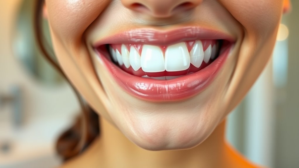 Since sensitive teeth require extra care, choosing whitening strips that are safe for your enamel is vital. Look for products formulated with gentle ingredients like hydroxyapatite or potassium nitrate, which help protect your enamel during whitening. Avoid strips with harsh chemicals such as high concentrations of hydrogen peroxide, as they can erode enamel over time. Using strips designed specifically for sensitive teeth ensures effective stain removal while maintaining your enamel’s integrity. It’s also essential to follow the instructions carefully, limiting wear time and avoiding overuse to prevent damage. Selecting whitening strips with enamel-safe technology helps you achieve brighter teeth without risking long-term harm, so you can enjoy a confident smile without compromising your dental health.