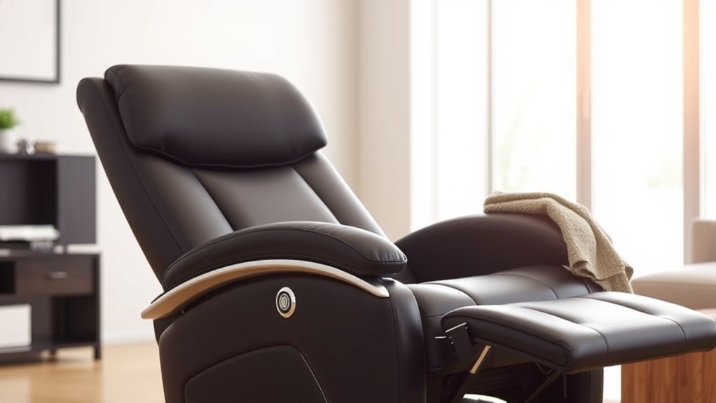 Are you wondering how to get the best value when choosing a zero-gravity recliner? Prices range from around $300 for basic models to over $1,000 for premium options with extra features. Higher-priced recliners often include massage modes, heat therapy, adjustable headrests, and built-in charging ports, which can enhance your overall experience. When evaluating cost, consider durability, warranty coverage, and the features included—sometimes spending a bit more means better long-term value. Budget-friendly models may lack some premium materials or advanced functions but still provide solid comfort and the zero-gravity benefit. Finding the right balance between price and features ensures you get the most comfort, durability, and amenities for your budget, making your investment worthwhile.