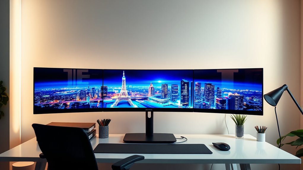 Choosing the right ultrawide monitor is like steering a vast, open sea—each option a different vessel with its own strengths. As you set sail toward increased productivity and immersive visuals, remember that your choice shapes your journey. Trust your instincts, weigh the factors carefully, and soon you’ll find your perfect vessel to explore new horizons with confidence and clarity. Your voyage to seamless viewing starts now—are you ready to chart your course?