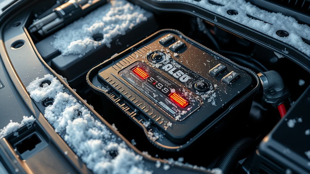 If you’re worried about your car starting in cold weather, I recommend checking out some of the best vehicle battery warmer pads available. These pads range from silicone heater mats with thermostatic controls to universal insulation kits that keep your battery warm and functional. Many are durable, easy to install, and designed to prevent issues caused by freezing temperatures. To find the top options that suit your needs, keep going—you’ll discover some excellent solutions tailored for winter reliability.