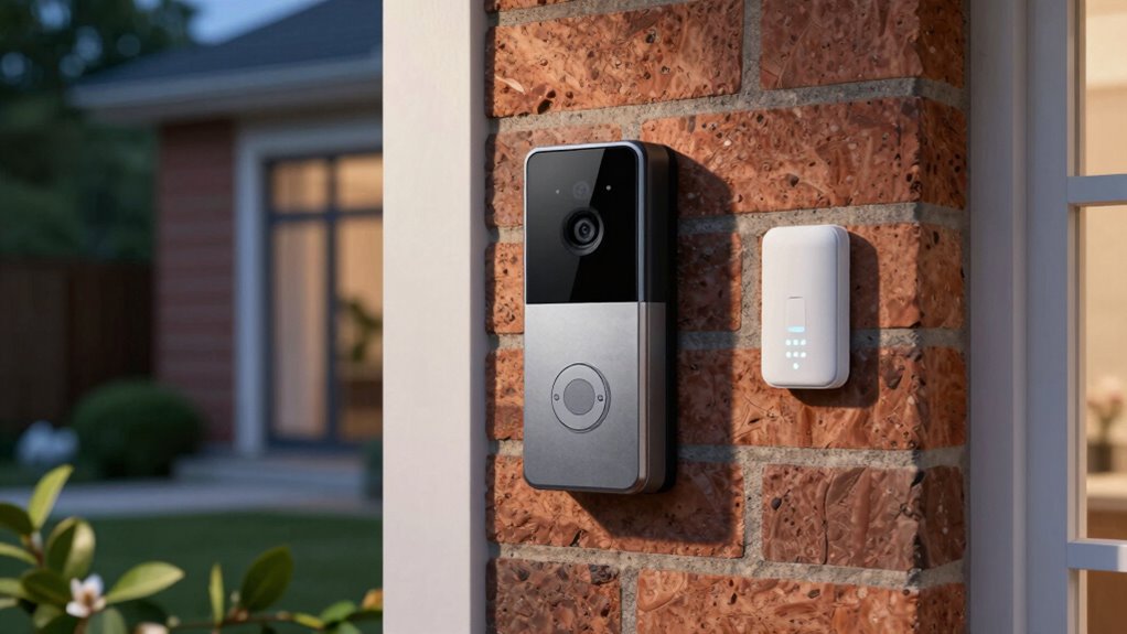 Integrating your video doorbell with your existing smart home system can markedly boost your home security and convenience. Make certain the doorbell is compatible with your ecosystem, whether it’s Alexa, Google Assistant, or Apple HomeKit. Look for features that enable it to trigger other devices—like lights or alarms—automatically, enhancing your security setup. The ability to control and monitor your doorbell remotely through an app or voice commands is essential for convenience. Also, check if it supports automation routines, so you can set specific actions based on triggers, like alerting you when someone’s at the door. Ultimately, prioritize systems that ensure secure data transmission and privacy controls, protecting your personal information from potential breaches.