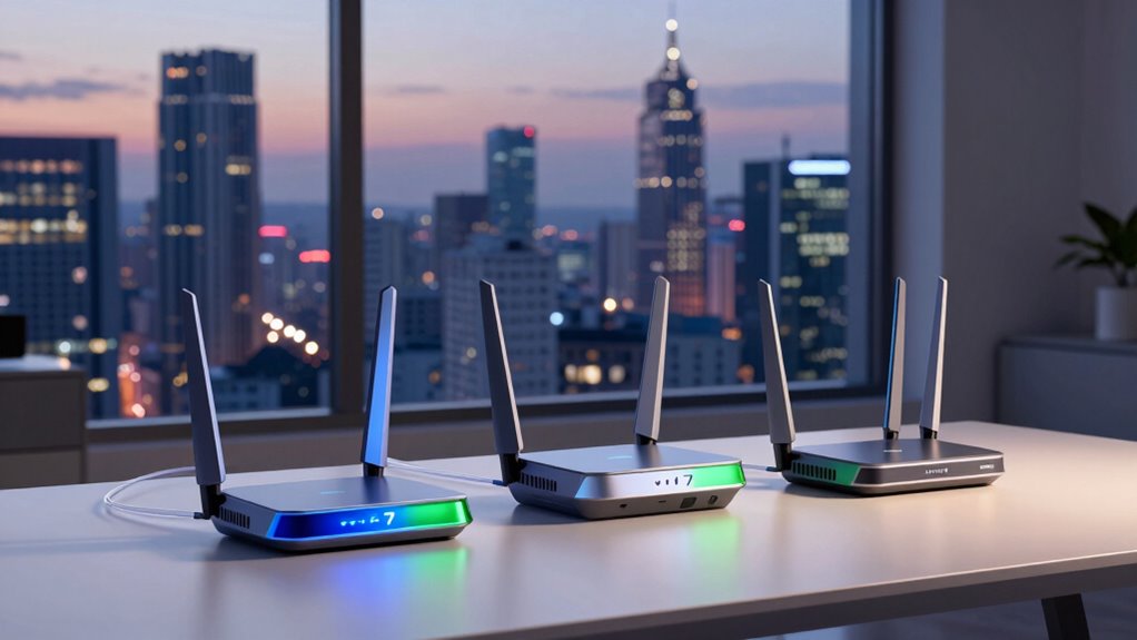 As I picture my home filled with the glow of a seamless, fast connection, choosing the right WiFi 7 router feels like finding the perfect piece of the puzzle. Whether it’s a sleek mesh system or a gaming powerhouse, each option offers a smarter way to stay connected. Just like the cozy evening light filtering through the window, the right router brings everything together effortlessly, making my digital world smoother and more reliable.