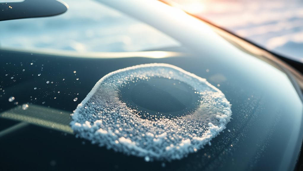 The ice melting power of a windshield de-icer mainly depends on its chemical makeup, especially its alcohol content. Higher methanol levels mean faster and more effective melting, which is vital during cold snaps. Concentrated formulas tend to have more alcohol or active ingredients, allowing them to quickly dissolve ice and frost. The key is their ability to lower the water’s freezing point, helping to melt ice at lower temperatures. Products with higher coverage per ounce are typically more potent, making them better for large or heavily iced surfaces. Keep in mind, ambient temperature influences performance; colder conditions often require stronger formulations. Choosing a de-icer with high melting power ensures quicker results, so you can clear your windshield efficiently and safely.